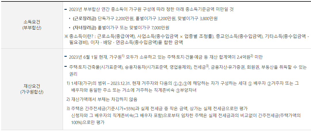 A: 근로장려금 신청 자격은 가구의 소득과 재산 요건을 충족하면 가능합니다. 소득 기준은 단독 가구, 홑벌이 가구, 맞벌이 가구에 따라 다르며, 해당 요건을 충족하는지 반드시 확인해야 합니다. 소득 및 재산 요건은 국세청 홈페이지에서 자세히 확인할 수 있습니다.