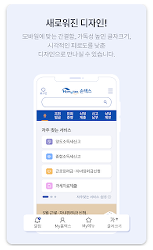 - 손택스 앱 설치: 스마트폰 앱스토어에서 "손택스"를 다운로드합니다.