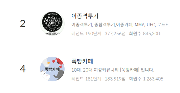 - 인기글 랭킹: 실시간, 주간, 월간 인기글을 확인할 수 있으며, 최대 6개월 전 콘텐츠까지 조회가 가능합니다.