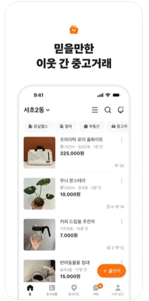 - 장점: 이웃과의 거래이므로 배송이나 택배 절차 없이 빠르고 안전하게 직거래가 가능합니다.