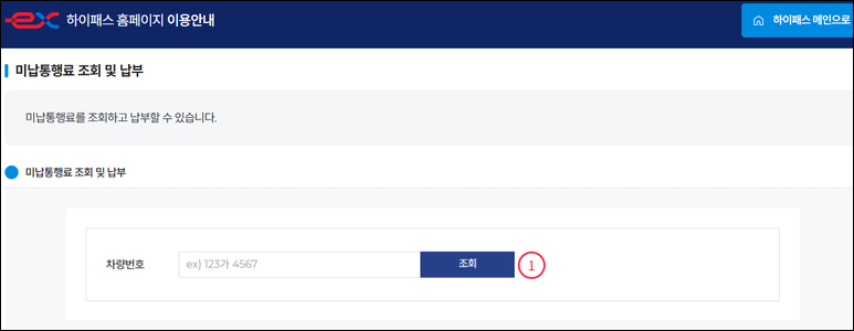 - 한국도로공사 하이패스 미납요금 조회 페이지 접속