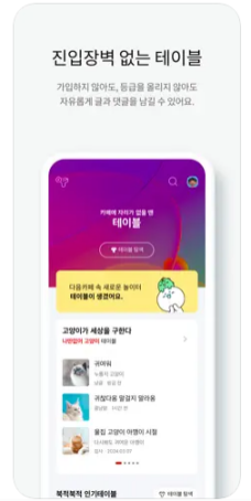 since 1999, 여러분의 이야기를 펼쳐 온 Daum카페! 이젠 앱에서 모바일에 특화된 기능을 통해 더욱 편리하게 즐겨보세요. ◈ 카페에 자리가 없을 땐 테이블 - 관심있는 주제의 테이블이 있으면 바
