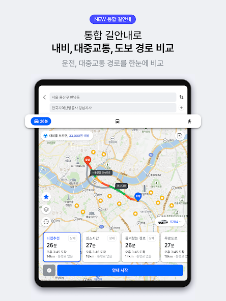 안드로이드 환경에서는 백그라운드 실행과 알림 설정이 비교적 자유로운 편입니다. 티맵 내비게이션 설치 후 실시간 교통 알림과 경로 변경 안내가 안정적으로 제공되는 것으로 확인됩니다. 다양한 기기 해상도에 대응하며, 차량 거치대 사용 시 화면 활용도가 높습니다.