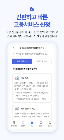 안드로이드 환경에서는 고용24 앱을 통해 워크넷 구인구직 서비스를 이용할 수 있습니다. 구글플레이에서 설치하기를 통해 앱을 설치하면 모바일에서도 채용 공고 검색과 지원 관리가 가능합니다.